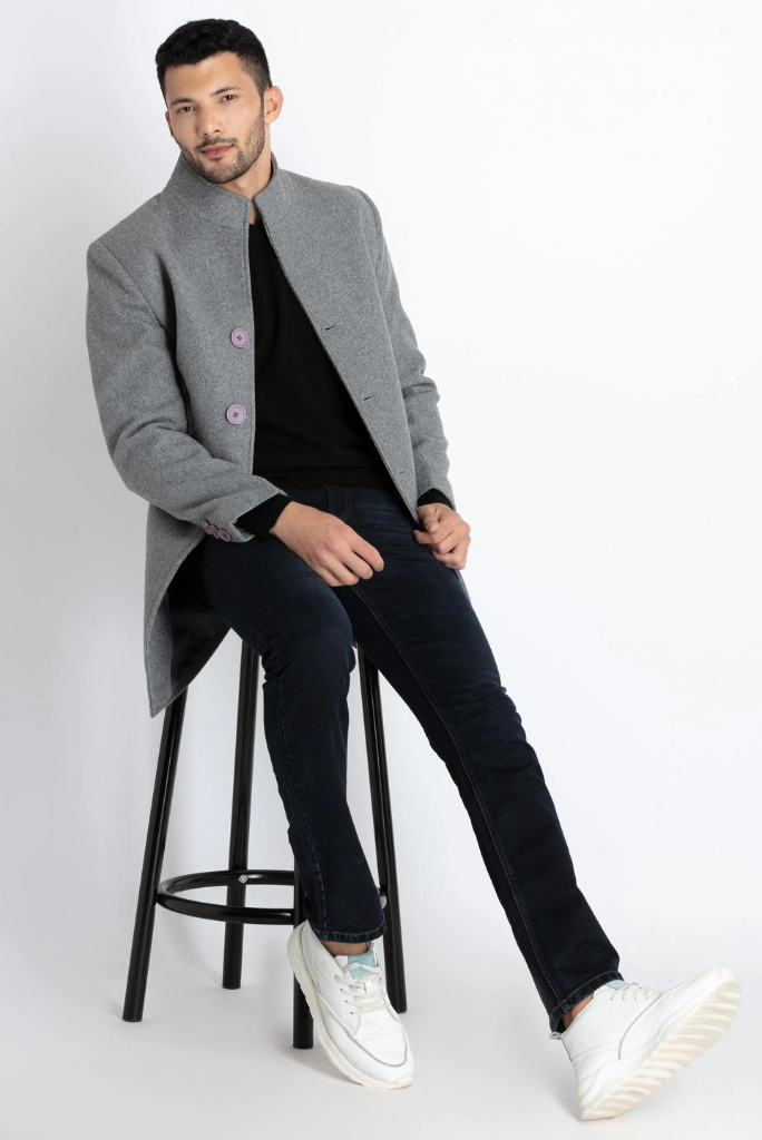 Men long coat in Grey winter coat New arrival for Elegant Hosting Evening Party Wear Long Coat for winter use